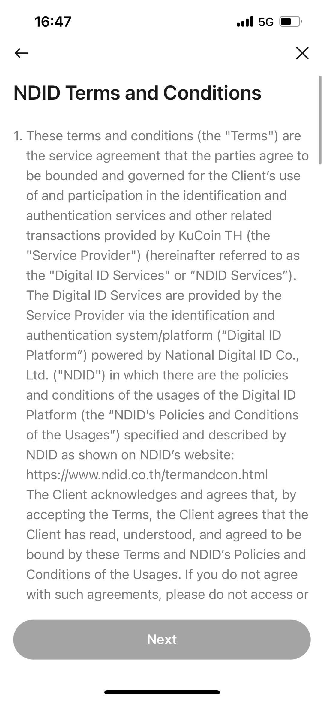 6. KuCoin Thailand support National Digital ID or NDID service only for verification of Thai nationals