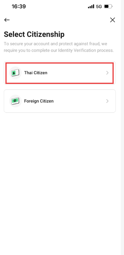 5. Select Citizenship: Thai Citizen or Foreign Citizen. Select [Thai Citizen]
